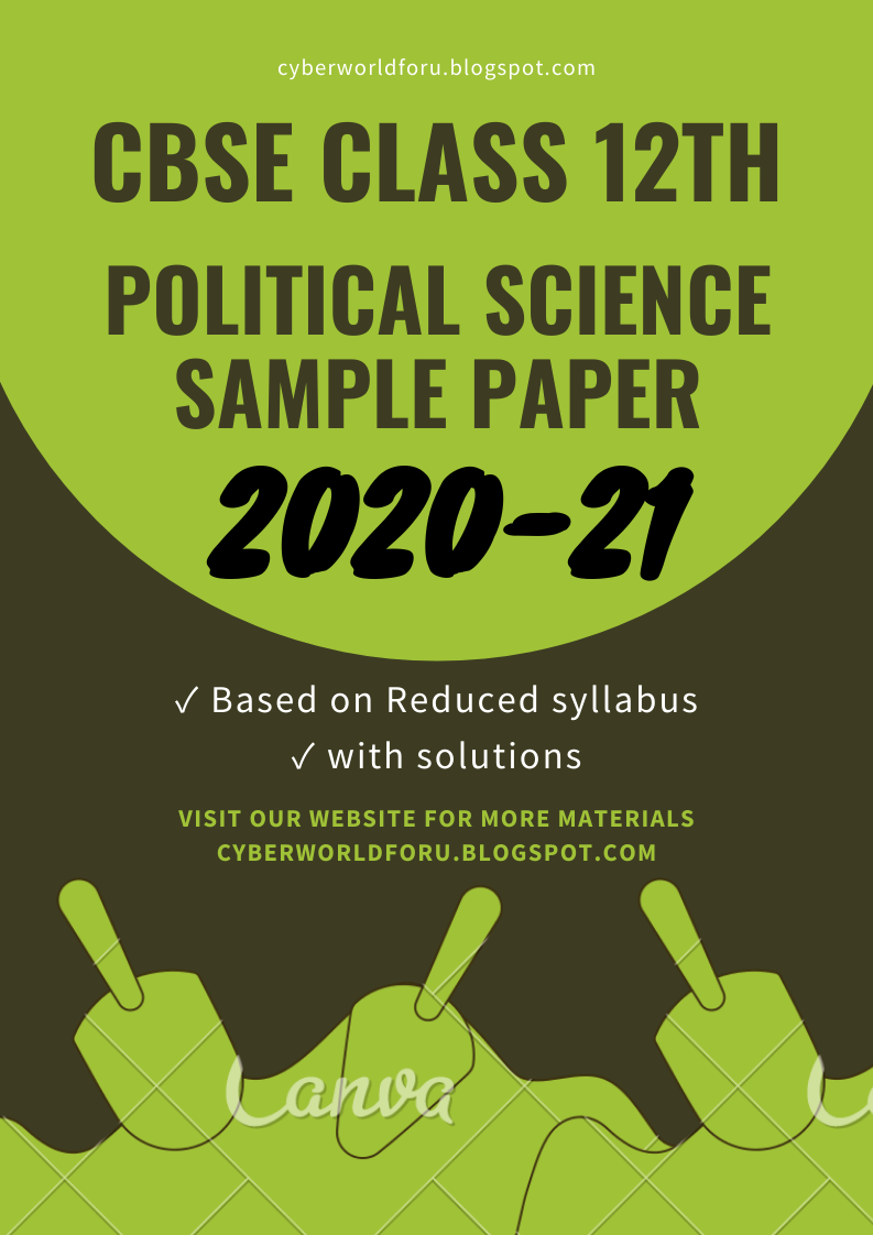 Hello everyone in this post I am going to upload CBSE class 12th political science sample papers of 2021 in free of cost .There are total 11 sample papers pdf avilable in this post,one sample paper is of CBSE launched officially and 10 other sample papers are based on the sample paper released by CBSE officially . All the 10 other sample have their Solution attached in the pdf . You can download these papers in free of cost .